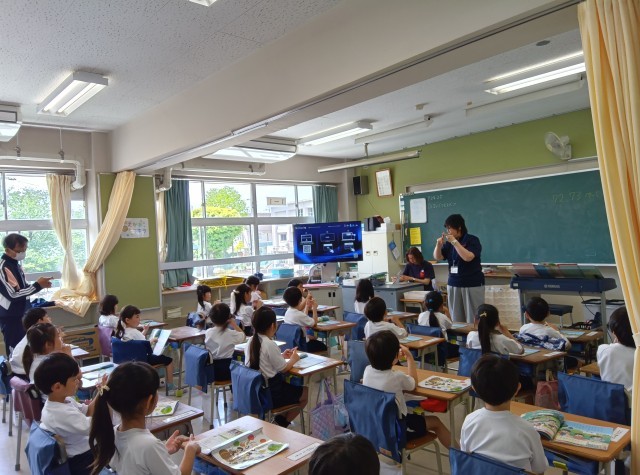 音楽の授業では、手拍子を使ってリズムをとりながら歌を楽しんでいます。