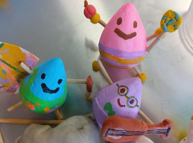 先生の可愛いしずくちゃんを見本に、自分たちのしずくちゃんを考えて作りました。