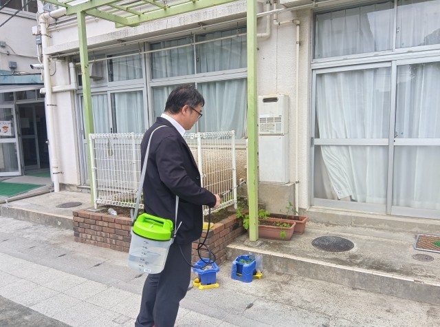 暑熱対策で、霧吹きを購入しました。運動会の時に使用してみたいと思います。今日は、校長先生が試しに使ってみました。
