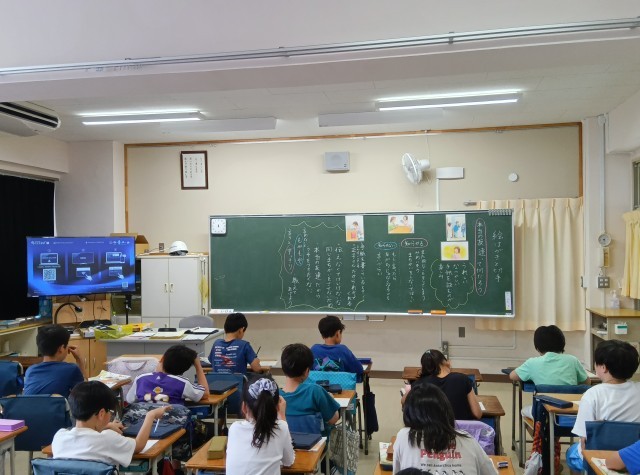 道徳科の授業では、絵はがきと切手を題材に信頼友情について話し合いました。