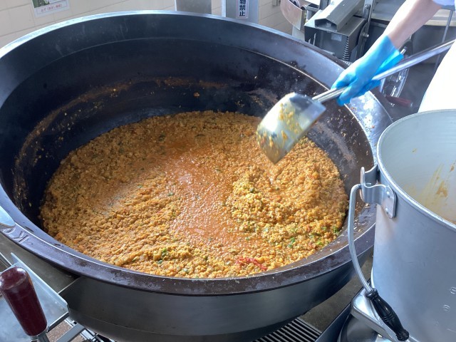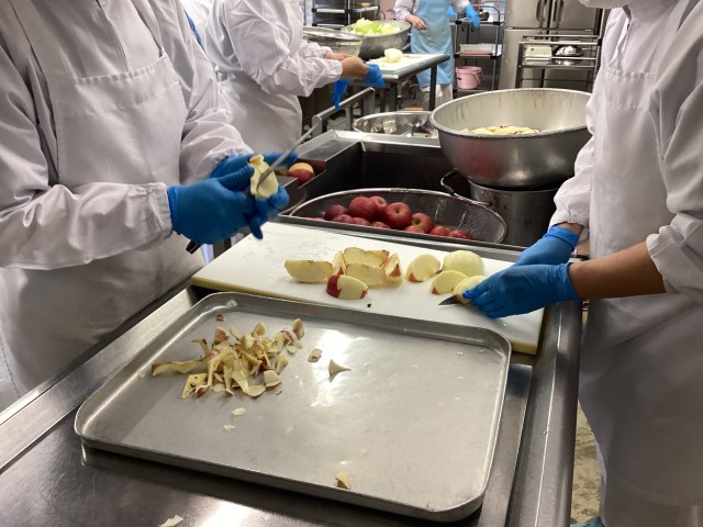 今日の給食は、キーマカレーライス、牛乳、フレンチサラダ、くだもの(りんご)です。