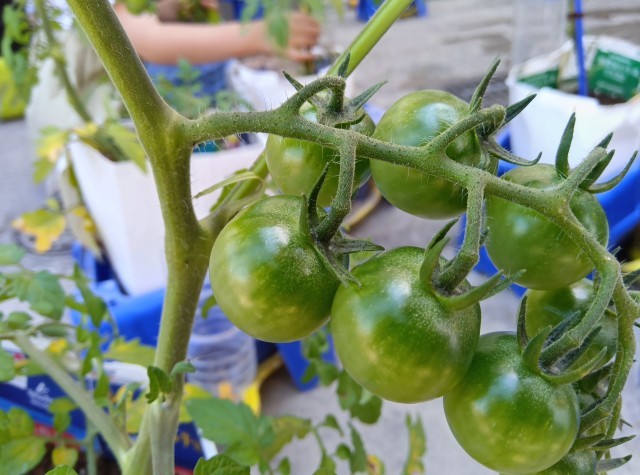 ミニトマトが青々と実ってきました。