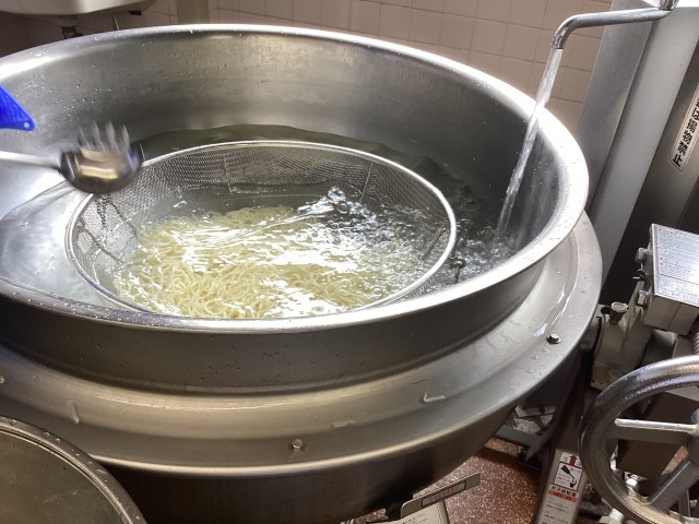 蒸し暑い日が続いていると食欲もだんだんと落ちてきてしまいますね。今日は暑い季節にピッタリな五目冷やしうどんにしました。うどんを茹でたり冷やしたり、回転釜がとても大忙しでした。