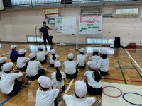 5年生は、八幡中学校へ部活体験に来ています。それぞれの部で、中学生が、親切に教え...