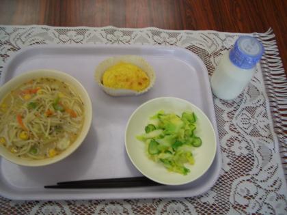今日のメニューは、サッポロラーメン、ひとしお野菜、スイートポテト、牛乳です。多く...