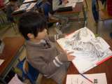 1年生の教室では、朝の会の前に、昨日生活科の時間に作った“ぶんぶんごま”をまわ...