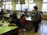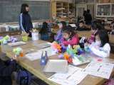 1年生は、“図工の授業”・・・作品の仕上げと授業が終わって片づけ・・