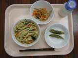 【献立】 カレーうどん 牛乳 わかさぎの磯辺揚げ かみ...