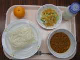 【献立】 チキンカレーライス 牛乳 ブロッコリーのサラダ ...