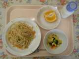 【献立】 キャベツとツナのスパゲッティ 牛乳 さつまいもサラダ ...
