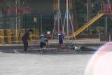 体育館では、鬼ごっこをして体を温めてから学習に入りました。 校庭では、子どもたち...