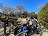 砧公園に着きました。いくらか風は止みましたが、少し寒いです。これからお弁当です。