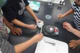 教室からは楽しそうか声が聞こえてきます。 レゴブロックを使ったプログラミングの授...