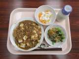 【献立】 麻婆豆腐焼きそば 牛乳 ナムル フルーツヨ...
