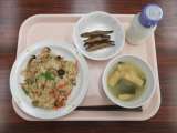 【献立】 きのこごはん 牛乳 みそ汁 きびなごのから...
