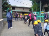 今日は低学年で遠足です。ちょっと肌寒いですが、出発です。