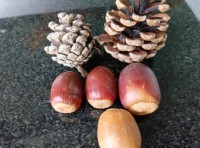 沢山のどんぐりと松ぼっくり。秋がいっぱいです。