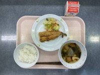 今日の給食は、麦ごはん、牛乳、ししゃものカレー揚げ、和風ポテトサラダ、豆腐汁です...