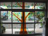 子供たち一人ひとりがカットした木の葉 209枚が玄関の「椎の木」にしげりました。...