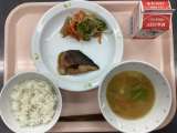今日の給食は、麦ごはん、牛乳、魚の照り焼き、こんにゃくサラダ、みそ汁です。