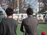 走り高跳びと走り幅跳びを行っています。リズミカルに練習を重ねています。