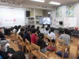 お楽しみ会の様子です。 各学級で、子どもたちが準備をした催しを発表しています。
