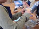 総合的な学習の時間では、何やら粘土細工をしています。 みんな、iPadで九品仏の...