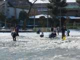 2度目の大雪に見舞われた校庭を6年生と教職員とで雪を校庭の隅に運びました。6年...