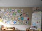 学校の玄関に子どもたちの作品を展示しています。現在は、2年生の「かたちをならべ...