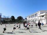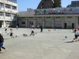 今日の体育科の授業は、ボール運動です。ボールを蹴りながら、的の段ボールを当ててい...