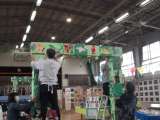 展覧会前日に、教職員で会場の準備を行いました。 4年生の共同作品を組み立てている...