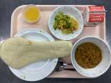 今日の給食は、ナン、牛乳、キーマカレー、にんじんドレッシングサラダ、フルーツゼリ...