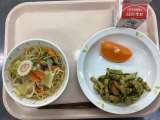 今日の給食は、中華丼、牛乳、中華風コーンスープ、くだもの(せとか)です。
