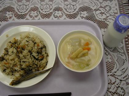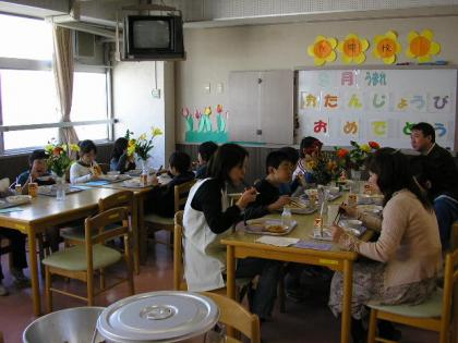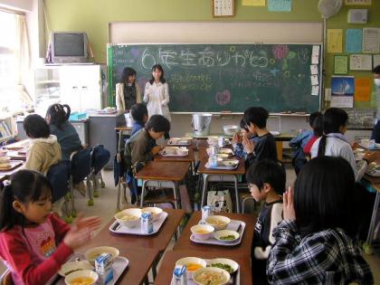 『お別れ給食』は、縦割り班で食べました。6年生のリクエストで、献立は「サッポロラ...