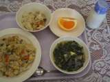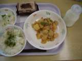 今日のメニューは、ごはん、牛乳、四川豆腐、ナムルです。