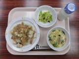 【献立】 肉豆腐丼 牛乳 キャベツの塩こんぶかけ かき玉...