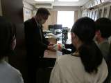 5時間目終了後に、6年生の皆さんが家庭科の授業で制作した雑巾を教職員に配ってくれ...