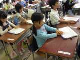 “国語科の授業”・・・先生の質問に真剣に教科書を読んでいました。