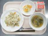 今日の給食は、チャーハン・牛乳・辣白菜・茎わかめの中華風スープです。 《食材産...