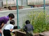 理科の観察では、校庭でたくさんの春を見つけました。 じっくりと観察をしています。