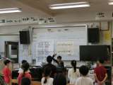 前の時間に学習した黒板の写真をテレビに拡大し、振り返りながら学習を行っています。...