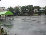 画面のように、雨が降り続き、校庭も水浸しです。火曜日に延期になります。 子ど...