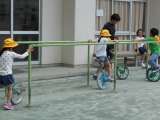 1年生が一輪車に挑戦している姿を見つけ、カメラを持って校庭に出ました。5年生は...