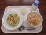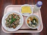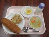 【献立】 カレーピラフ 牛乳 野菜スープ マセドアンサ...