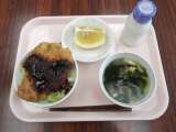 【献立】 みそかつ丼 牛乳 すまし汁 美生柑 ...