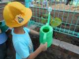 生活科の時間に、えだまめ・かぼちゃの苗とマリーゴールドの種を植えました。地域の...