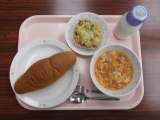 【献立】 スパゲティ地中海ソース 牛乳 ビーンズサラダ...