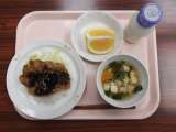 【献立】 みそカツ丼 牛乳 すまし汁 美生柑 【主...