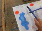 図画工作科の授業では、絵の具を使って色塗りをしました。 雪が降っている雰囲気を出...