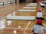 今日は体育館でマット運動をおこないました。 準備体操も念入りに行いました。